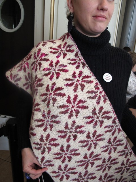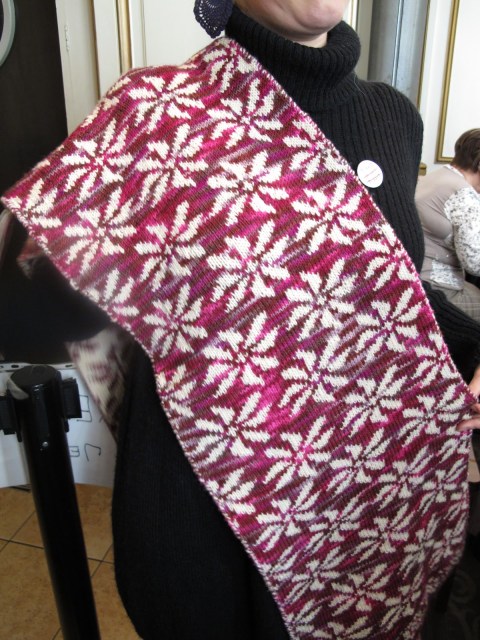 L’étole totalement réversible de Marguerite a obtenu le prix spécial du jury compte tenu de son originalité (elle a inventé ce patron) et sa technicité (les 2 côtés sont tricotés en même temps), et c’est mérité, je suis complètement fan de cette étole!