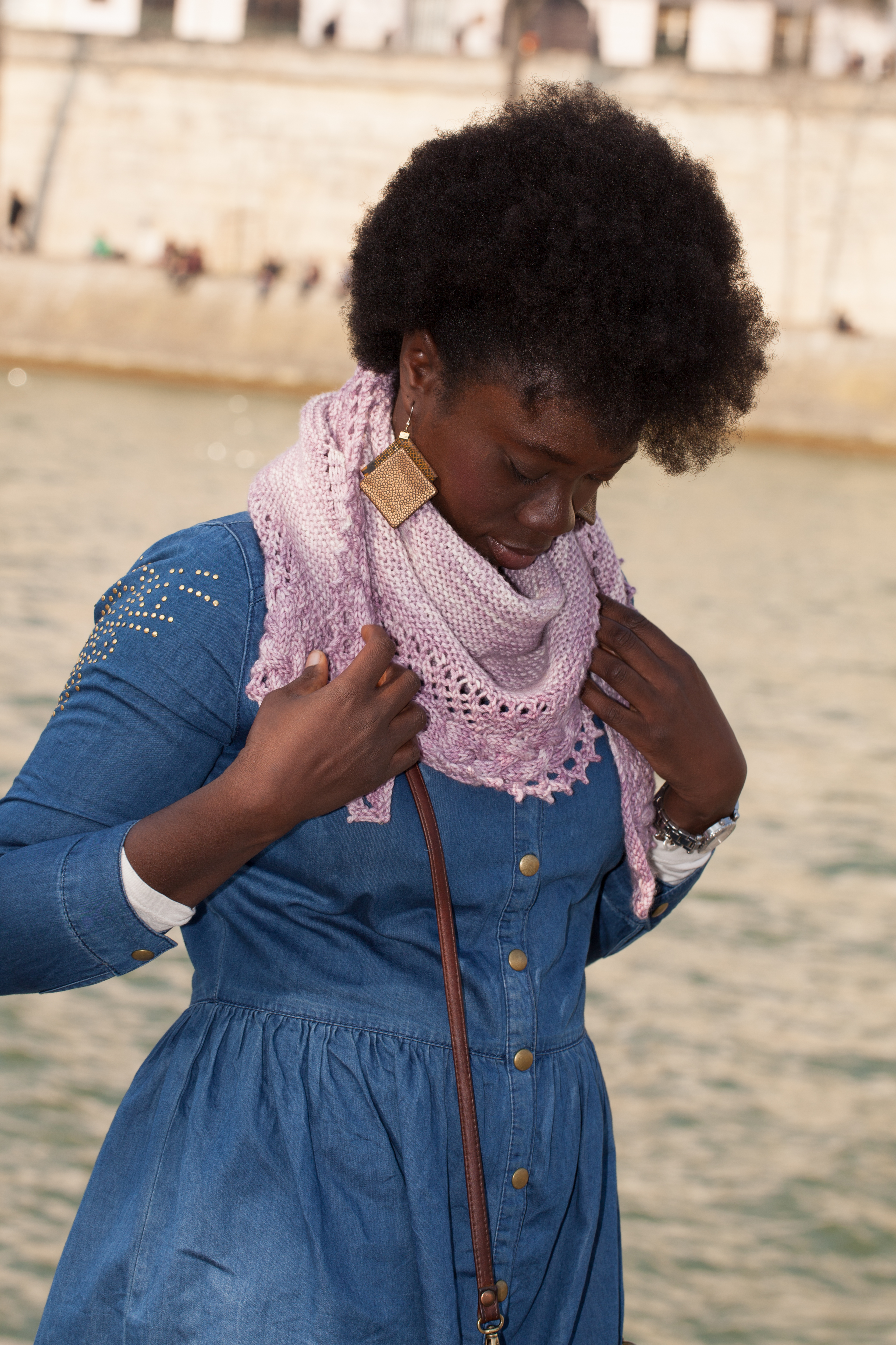 Au mois de février, j’ai tricoté ce joli châle dans le cadre d’un test knit pour Mademoiselle C, mais je n’avais pas eu le temps de faire des photos.