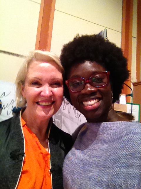 First, on Friday night, after having had the opportunity to dine with exhibitors and speakers of the festival (for example I had a chance to have dinner with Amy, the designer wool Madelinetosh and Felicia from Sweetgeorgia yarns), we gave a hand to Aimee for installing her corner.