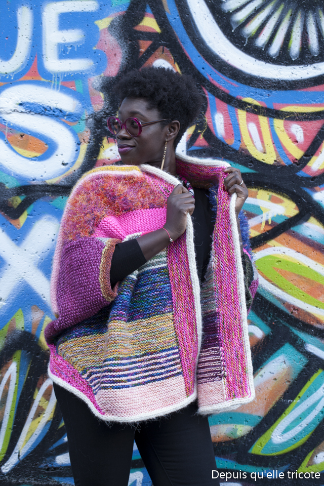 Tu es radieuse dans cette veste qui te donne bonne mine. Je n’assumerai pas autant de couleurs et de textures mais je la trouve magnifique sur toi. Je sélectionne ton billet sur Abracadacraft. Bravo, c’est vraiment superbe.