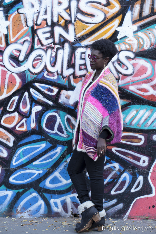 En le tricotant, je pensais que j’aurai du mal à le porter mais en réalité, c’est un peu comme un manteau/gros gilet et je le porte assez souvent surtout le week-end, c’est l’accessoire idéal à porter avec son jean et ses baskets, ce qui fait qu’aujourd’hui c’est l’un de mes tricots que je porte le plus.